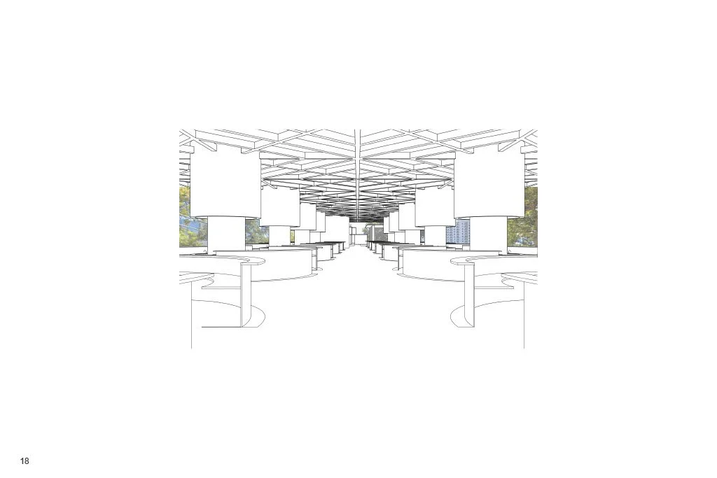 The market hall will integrate shared activities and events, specifically those of Native culture, with the selling of seafood, which will encourage functional community engagement. Ultimately, this serves as much more than a vibrant venue for trade via public interaction and civic presence, with inspiration from historical and modern precedents. By balancing aesthetics with cultural resonance to maximize shade and ventilation via an open and geometric plan, the hall will respond to the equatorial environment and sustainable principles, along with a multi-purpose urban green garden consisting of local greenery.